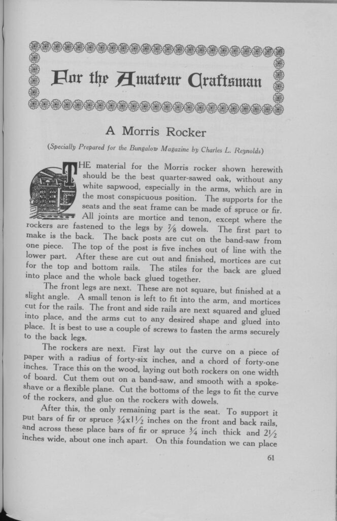 The Morris chair was a staple of Mission and Craftsman furniture. This rocker features quarter sawn oak and a thick, comfortable leather seat.